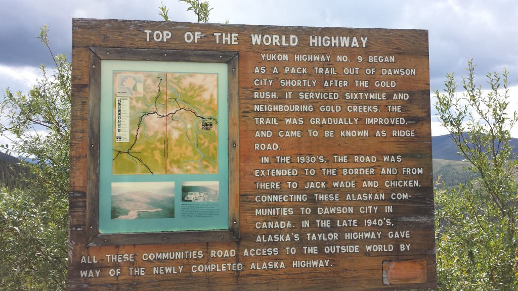 Top of the World Highway is a summer road only and was built along the ridges of several mountains, so nearly all day you can see for 100’s miles in all directions. The road is mostly gravel but the stones are under a layer of dirt, and occasional tarseal. It had been raining steadily for about 4 days, but again we missed that – we are so blessed – but the consequence was the road was very rutted out and muddy in places. My bike performs so well on that type of road, so I had a lot of fun 🙂