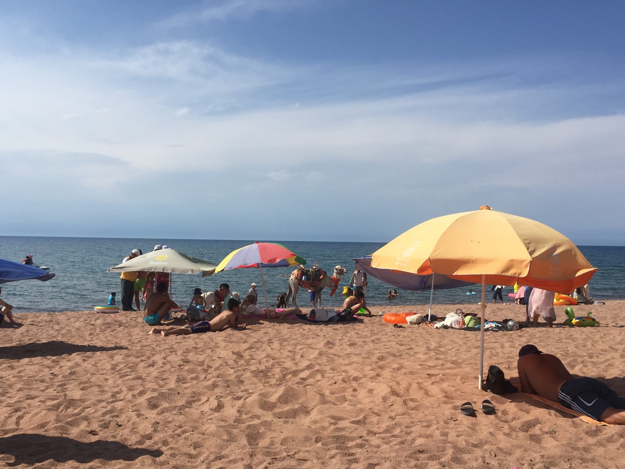 Spot the difference to a NZ beach – you don’t see too many camels on the beach at home.