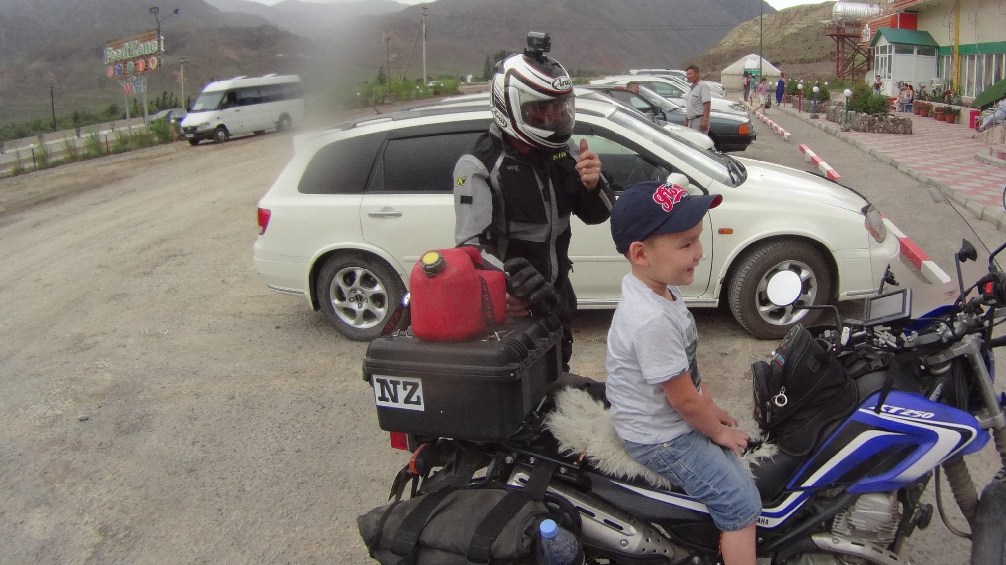 This little guy came straight up to us as we pulled in to shake our hands – made his day to have his photo taken sitting on the bike.