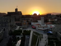 At our little hotel we were welcomed with iced coffee and juicy watermelon, we are right beside the big fortress that towers over the village, so were soon wandering around that before dinner. It was restored and re-invented in 2011.